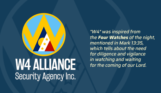 W4 Alliance Security Agency, Inc. is the first Security Agency founded by Mr. John Icen G. Sunga, President and CEO of Alliance Security Group and Chairman of JIGS Alliance Holdings Corporation. Established in 2001 as a single proprietorship, W4 ASAI soon became a corporation in 2010.